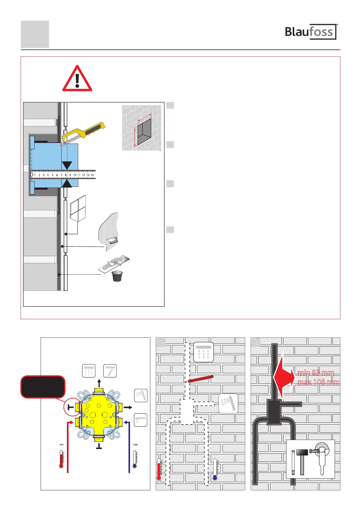 De minimumdiepte van 83 mm MOET ABSOLUUT behouden blijven.