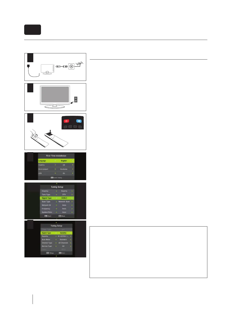 Please select desired language, country and environment. Set LCN* to ON if you