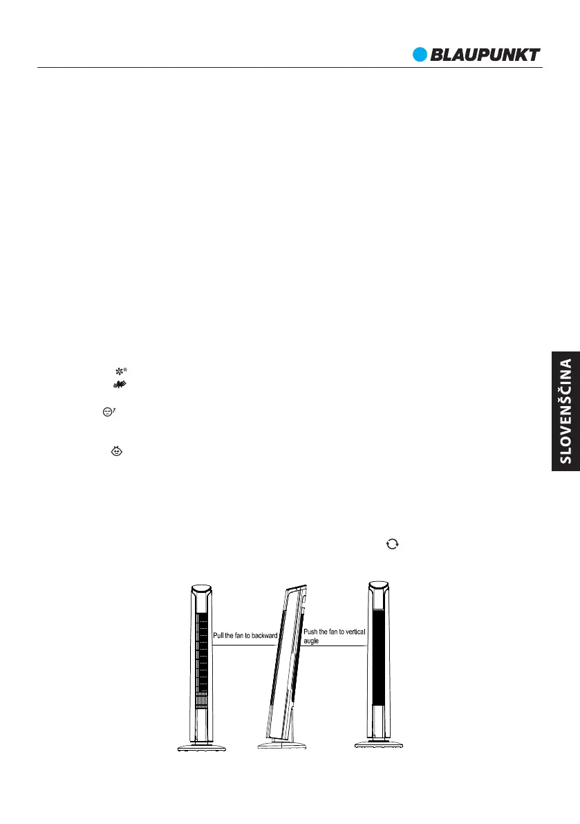 7. Če želite spremeniti nagibni kot ventilatorja, pritisnite ali povlecite za zgornji del ventilatorja, ob.