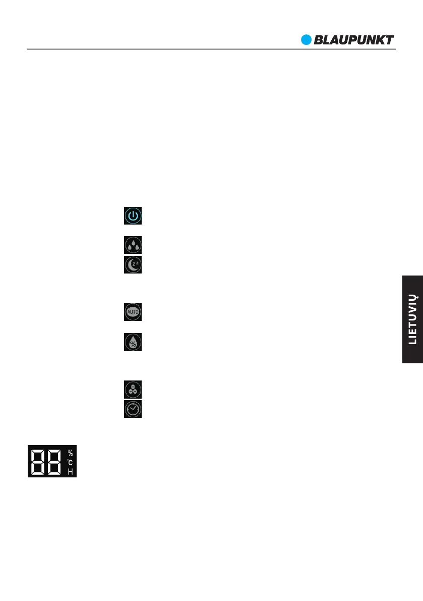 Kai ekrane pašviestas simbolis “%”, drėkintuvas rodosantykinį oro drėgnumą.