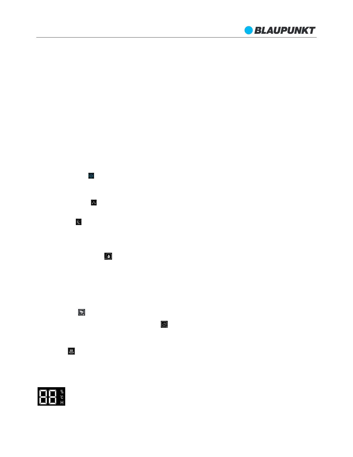 Humidistat / AUTO mód: A gomb rövid lenyomása az állandó páratartalom módot kapcsolja be. A
