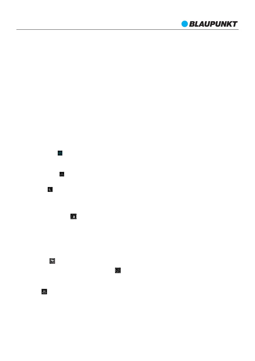 Humidistat / AUTO mód: A gomb rövid lenyomása az állandó páratartalom módot kapcsolja be. A