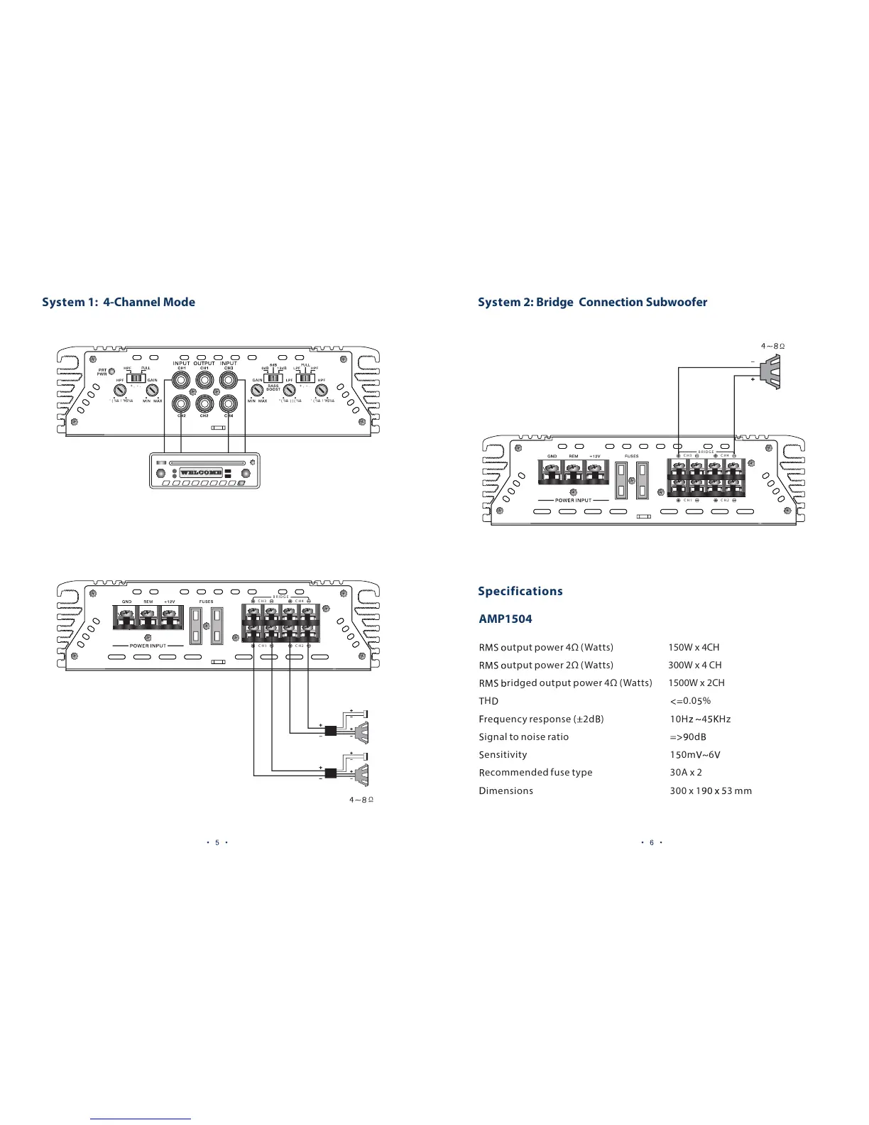 Blaupunkt AMP7502 - System 1: 4-Channel Mode; System 2: Bridge Connection Subwoofer