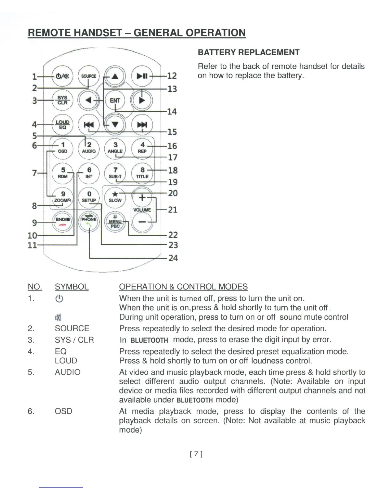 & hold shortly to turn on or off loudness control.