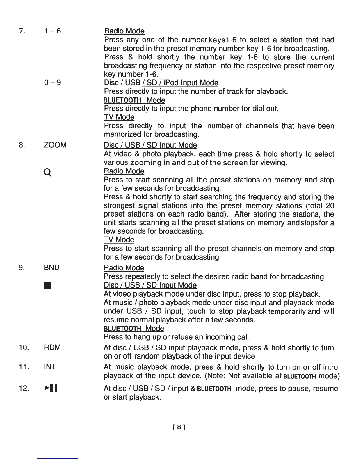 I USB I SD I iPod Input Mode