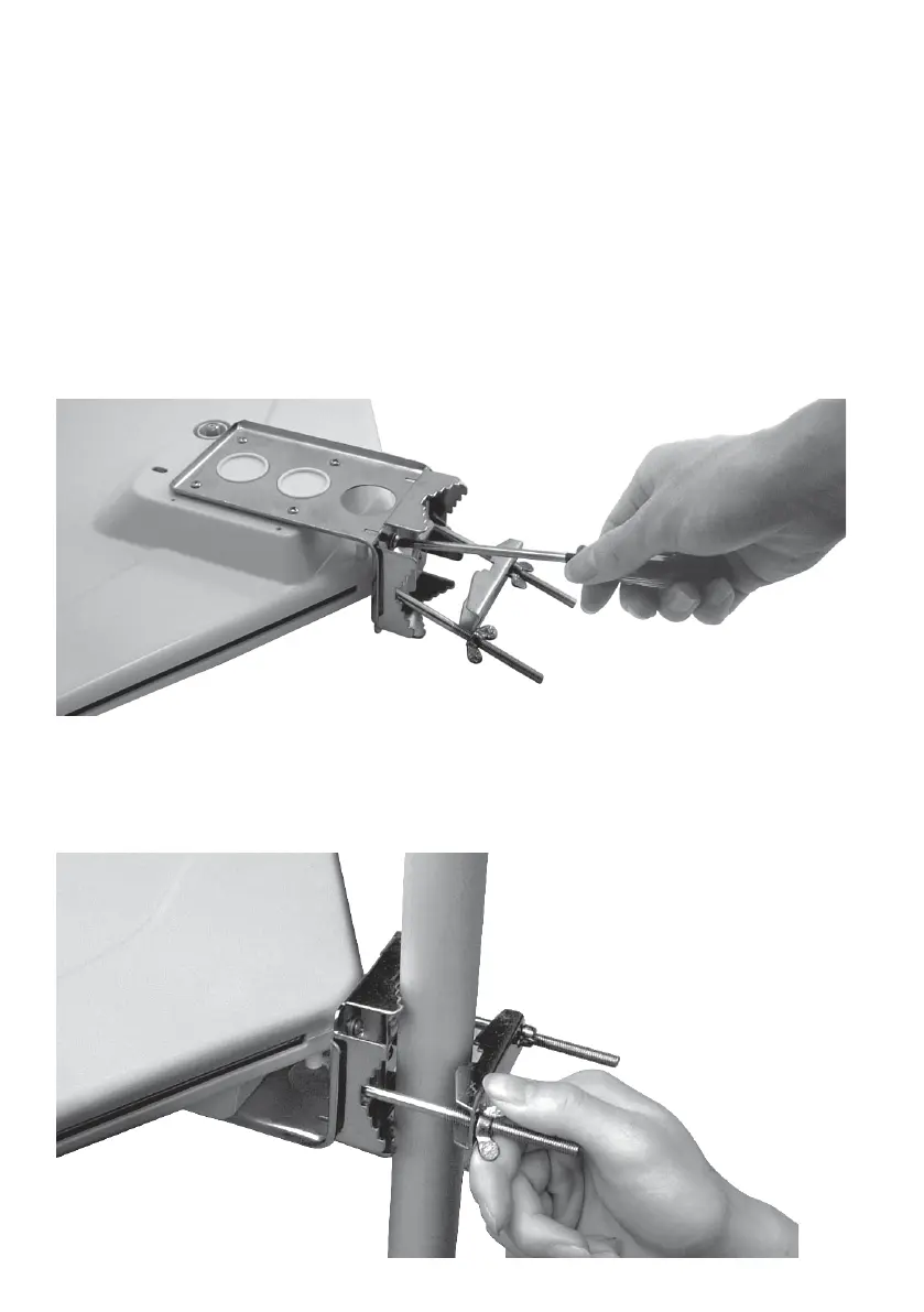 Attach the mounting bracket to the antenna using the two screws and tighten