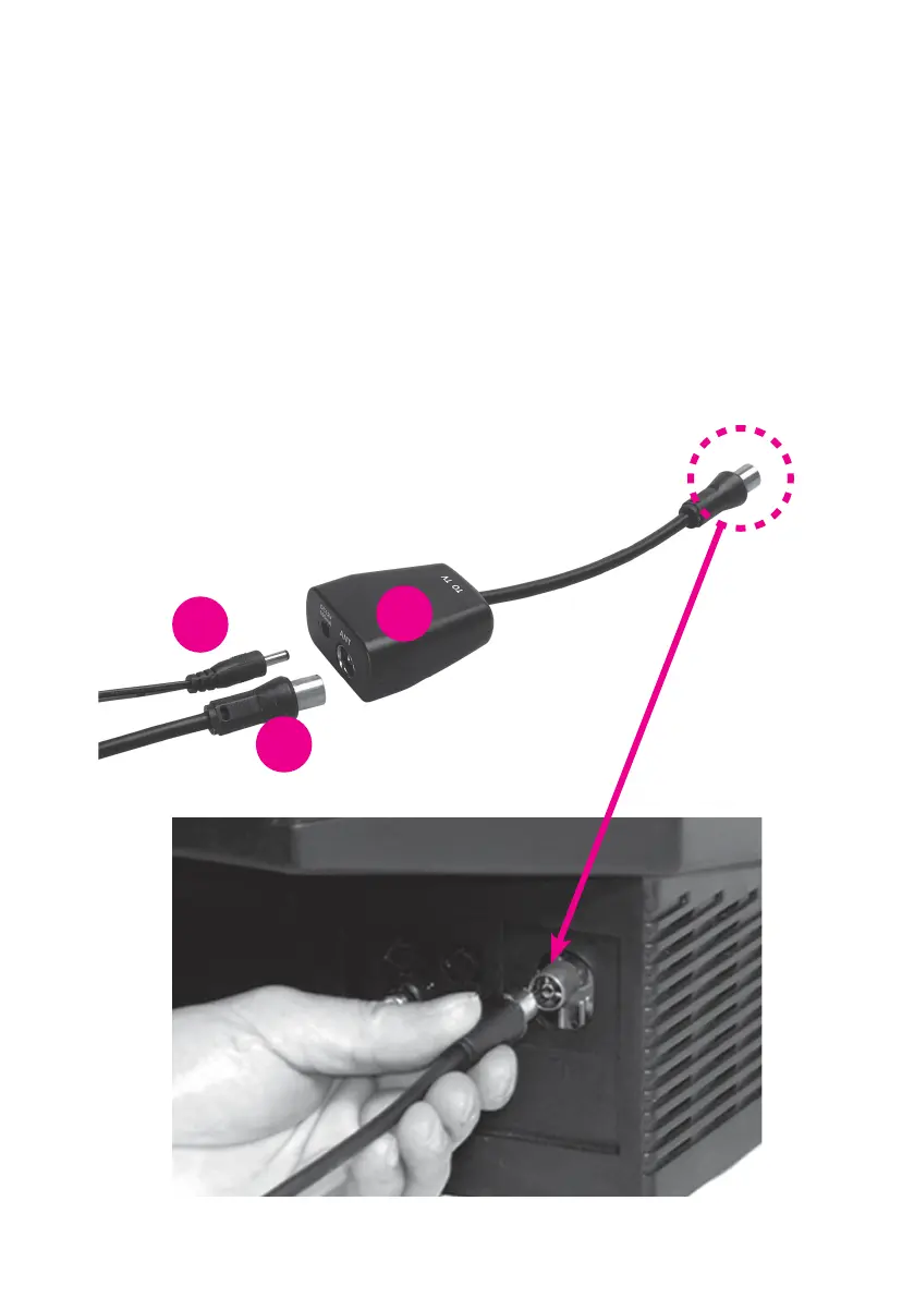 (1) - Connect Adaptor into back of TV Antenna (RF) port.