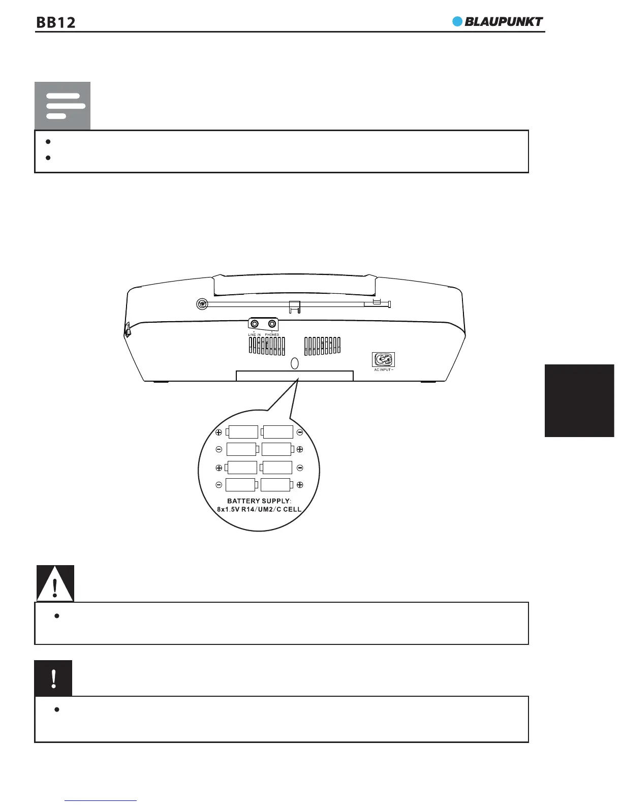 2. Vložte 8 × 1,5 V batérií typu R14/UM-2/C orientovaných tak, ako je vyznačené na