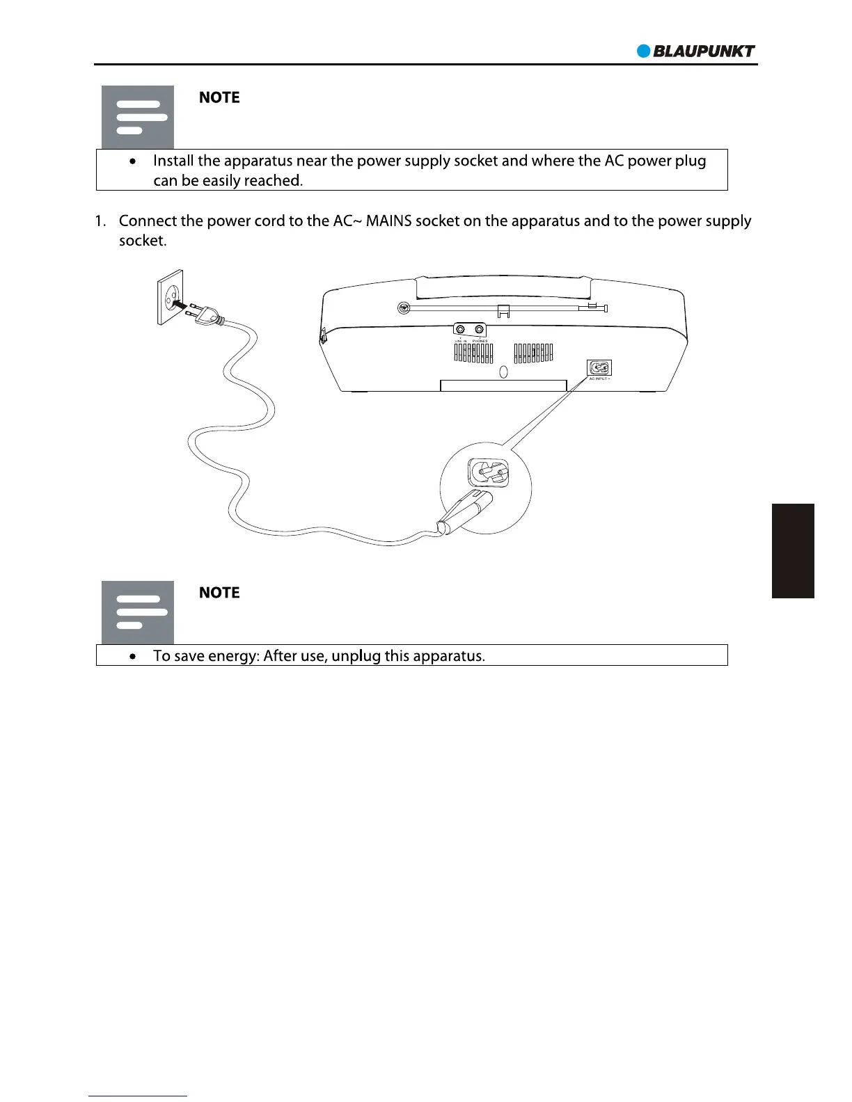 Blaupunkt BB12BK - AC Power Connection Procedure