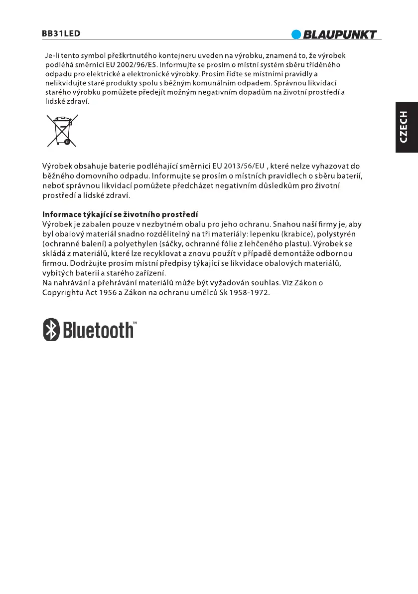 Bluetooth® název i logo jsou registrované obchodní známky společnosti Bluetooth SIG, Inc.