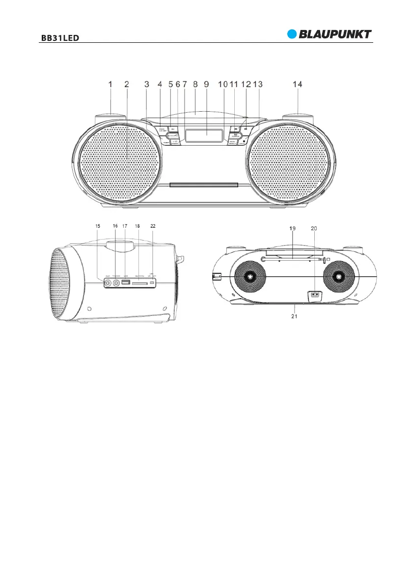 15. Vstup AUX-IN 16. Konektor pro sluchátka