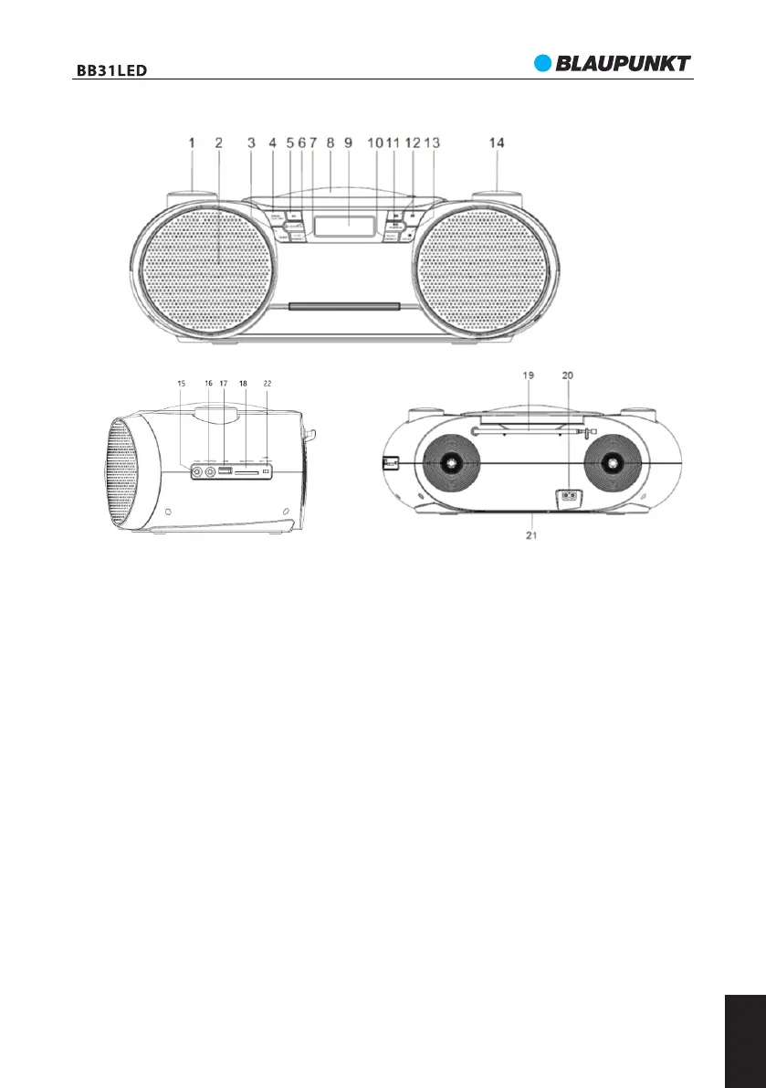18. Vtičnica za SD-/MMC-kartice 19. Antena FM