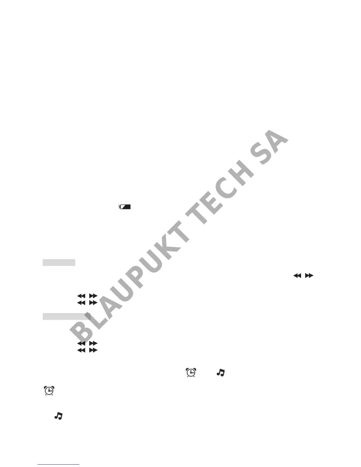 2. Press tuning / to adjust hour value. Then press ALARM to confirm and the minute digits flash.