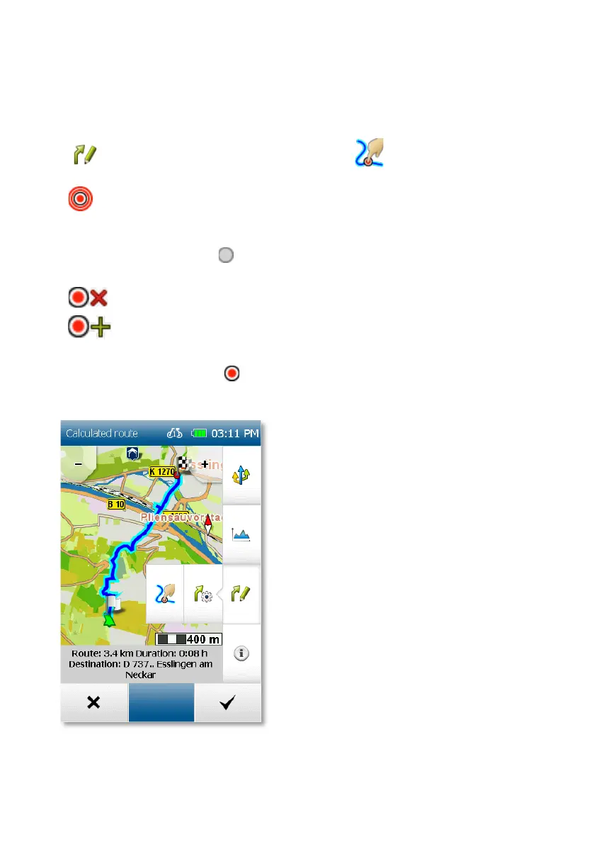 2. Appuyez sur le tronçon de l’itinéraire que vous souhaitez modifi er. Le marquage