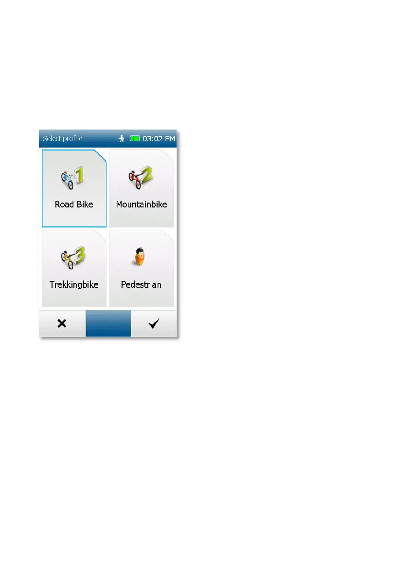 De menupunten „Fietsprofiel bewerken“ hebben betrekking op het zojuist ingestelde