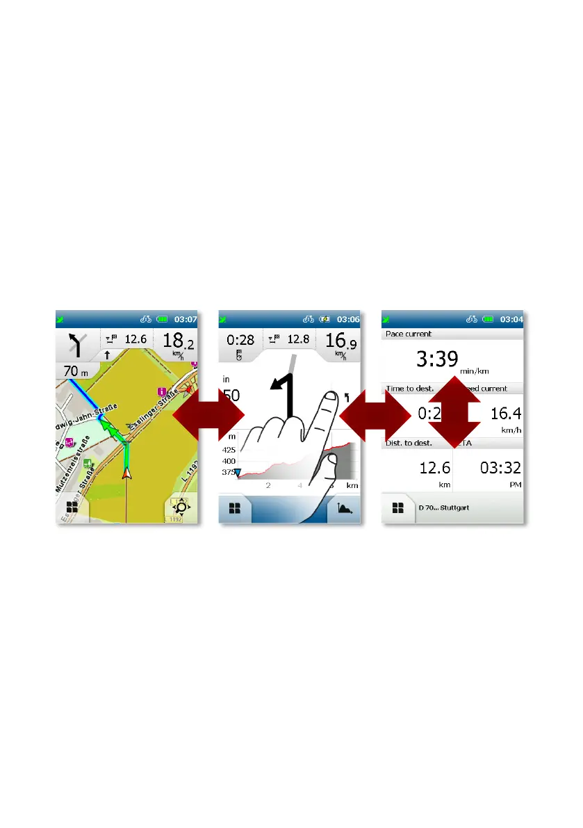 met je vinger over het scherm te bewegen. Ook de menu‘s van de BikePilot