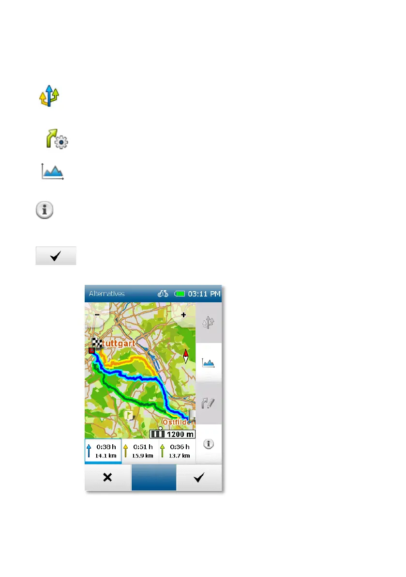 Dopo il calcolo del percorso, ci sono le seguenti opzioni: