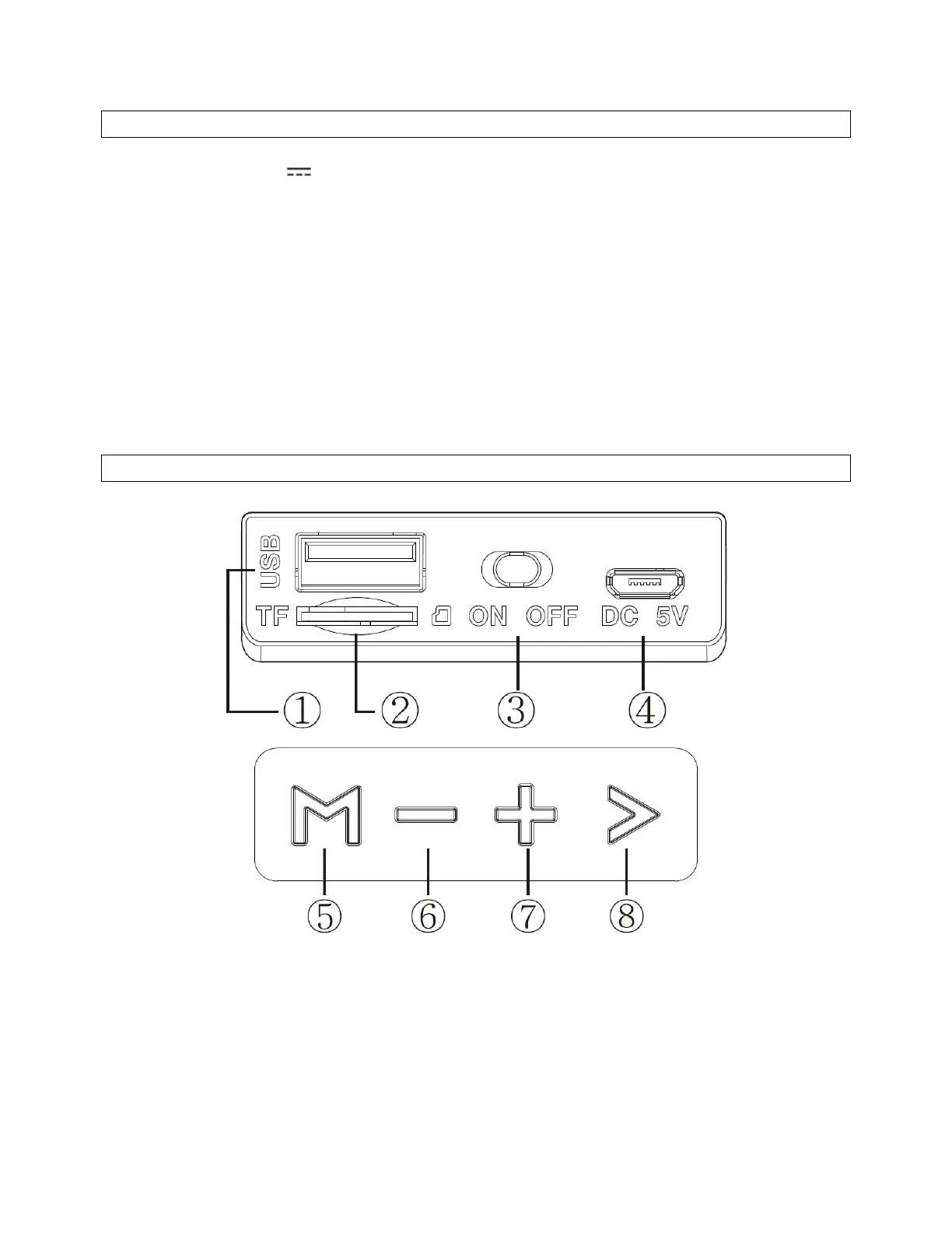1. USB slot: it can decode and play MP3 format audio when put USB card into the slot.