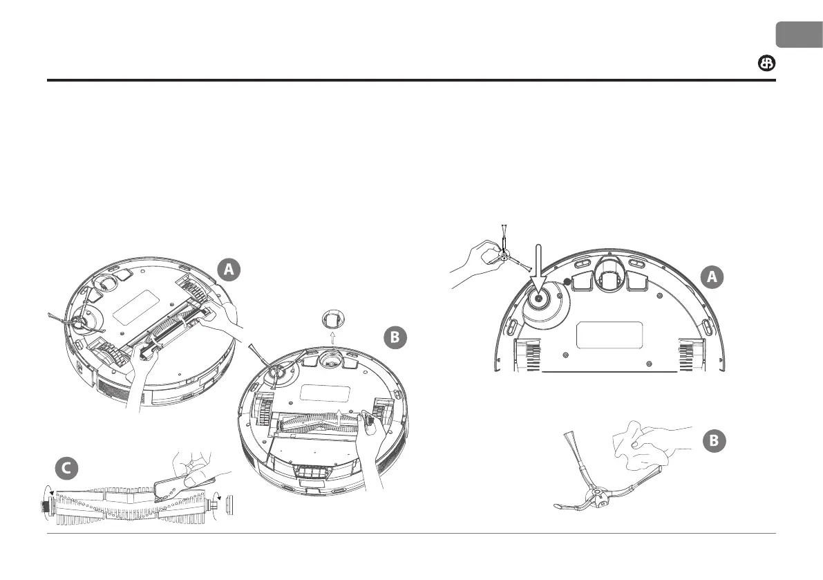 1 Drehen Sie die Maschine um und ziehen Sie die Seitenbürste heraus und