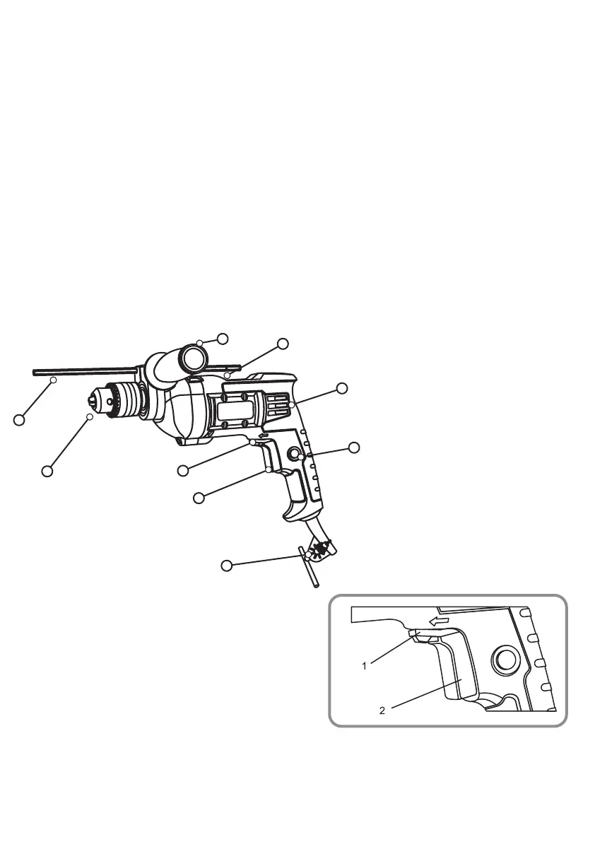 • der Bohrer läuft mit niedriger Drehzahl an. Wird der Schalter ganz eingedrückt, läuft der Bohrer mit höchster Drehzahl.