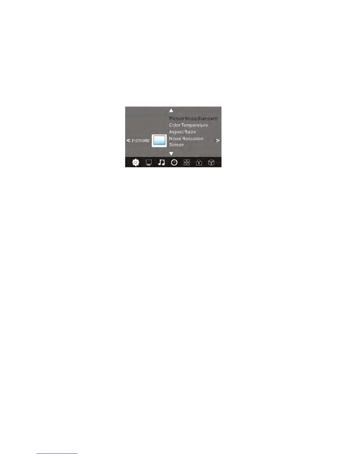 To enter the Picture Menu, press the MENU Button and then press the ◄ or ► Buttons to select the Picture Menu. Press