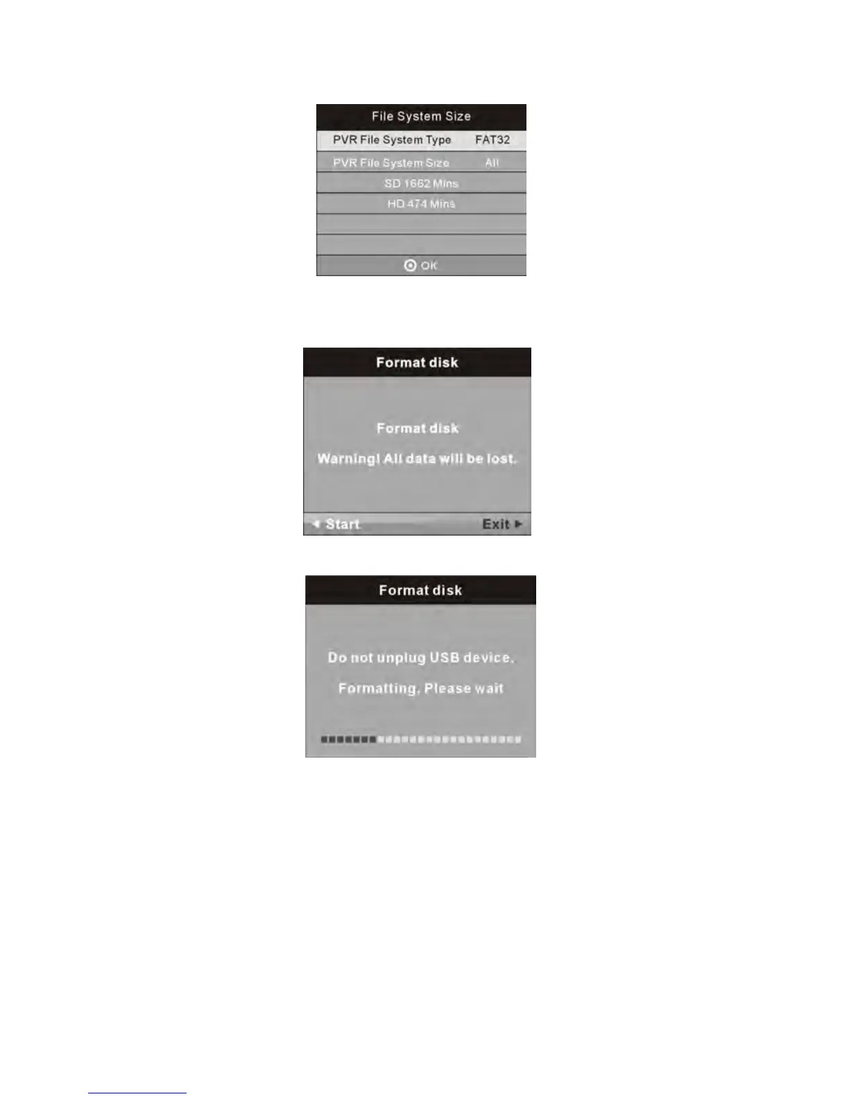 Do NOT unplug your Hard Disc or your USB device during formatting or it will damage your device.