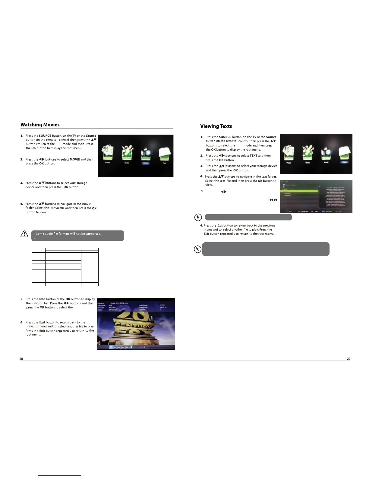 Supported file formats and decoder is as follow: