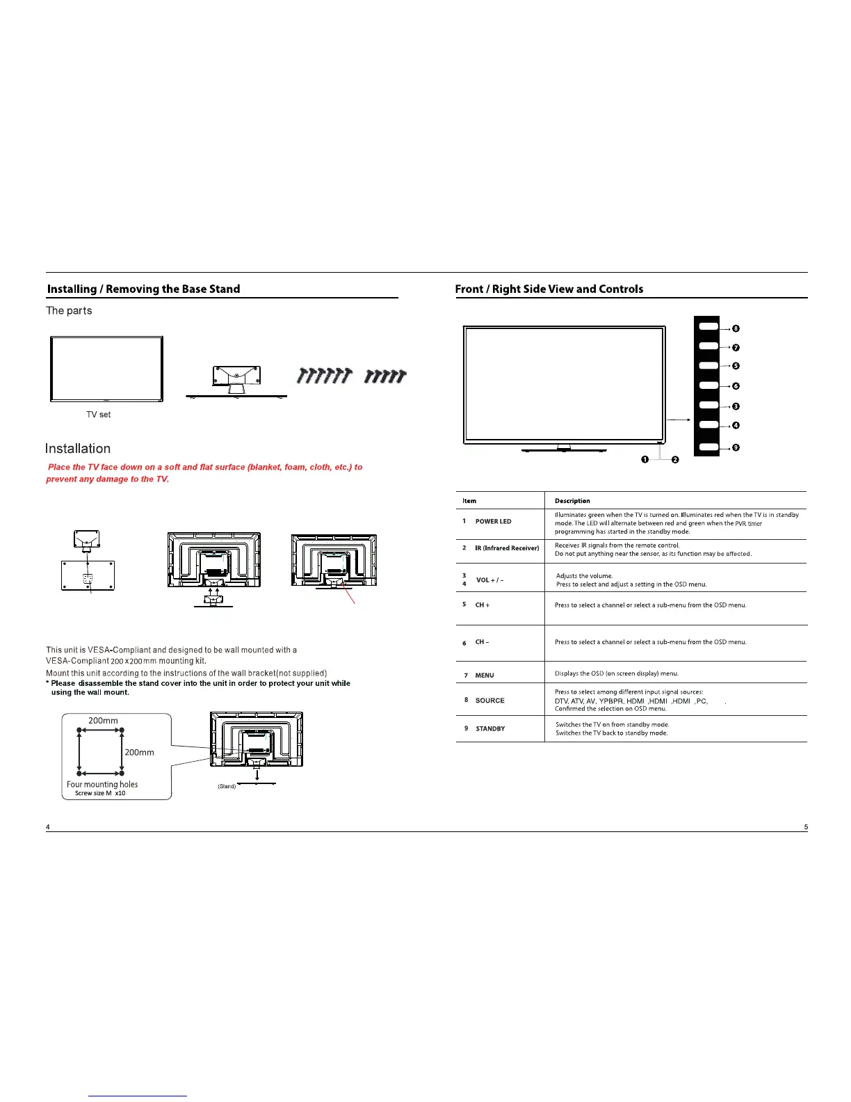 Blaupunkt BP4820FHD - Installing TV Stand and Controls Overview