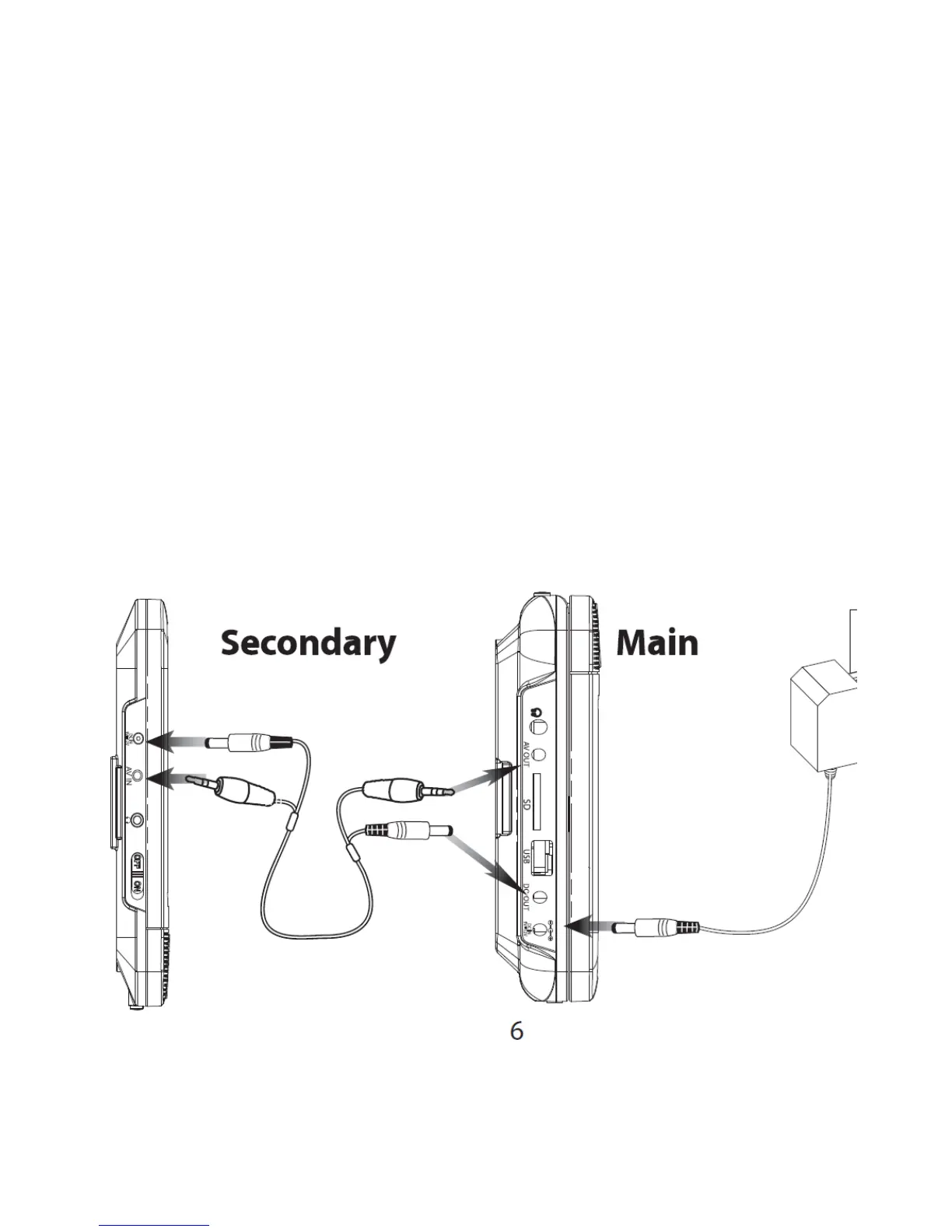 2. Plug the AV/DC cable into the AV Output and DC Output on the Main display and
