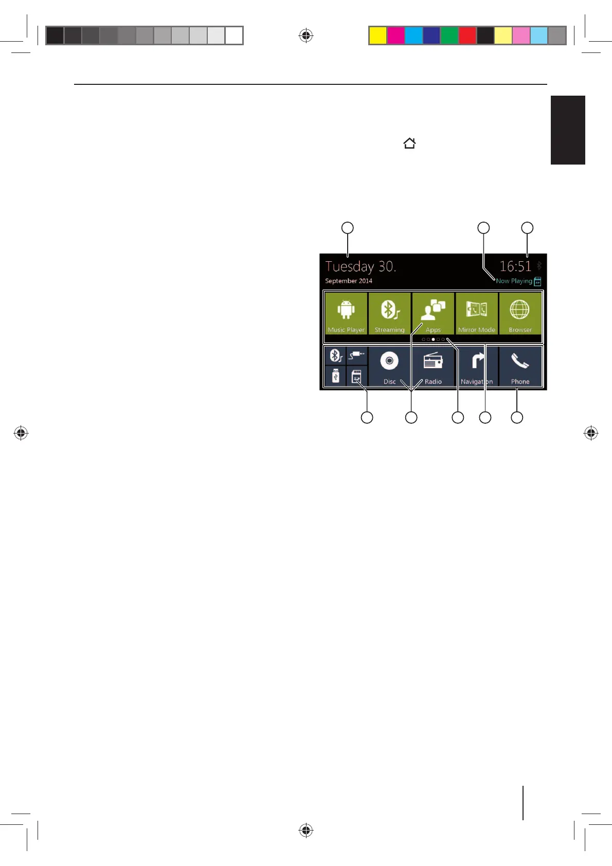 Päävalikko sisältää seuraavat alueet ja ilmoitukset: