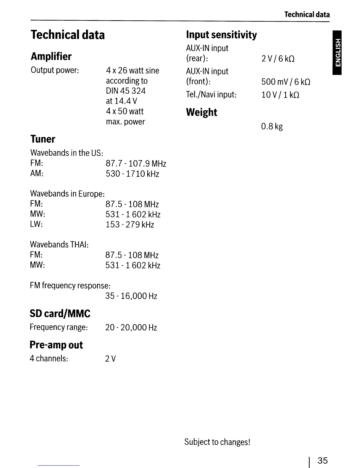 Blaupunkt Brisbane SD48 - Technical data