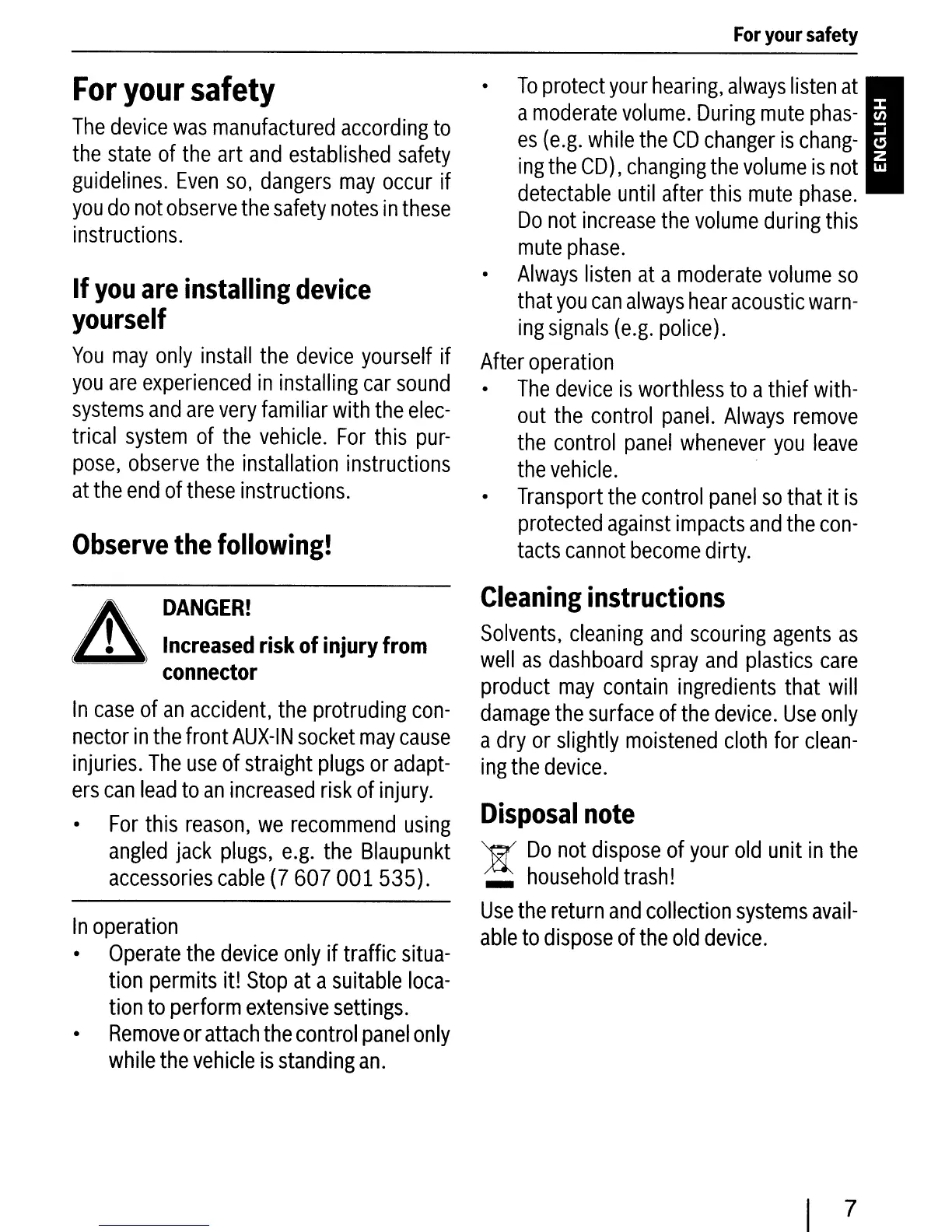 Blaupunkt Brisbane SD48 - For your safety; If you are installing device yourself; Observe the following!; Cleaning instructions