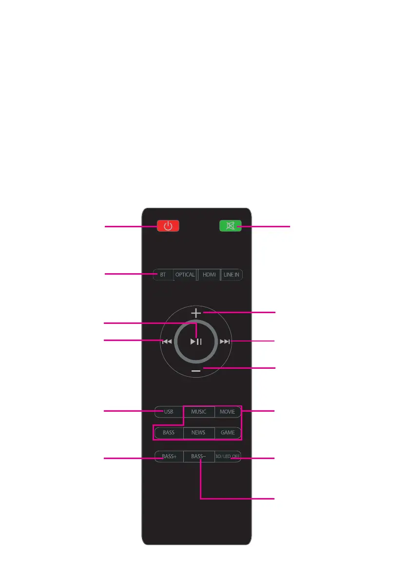 • Handle the remote control carefully, please do not drop, apply shock or step on it.