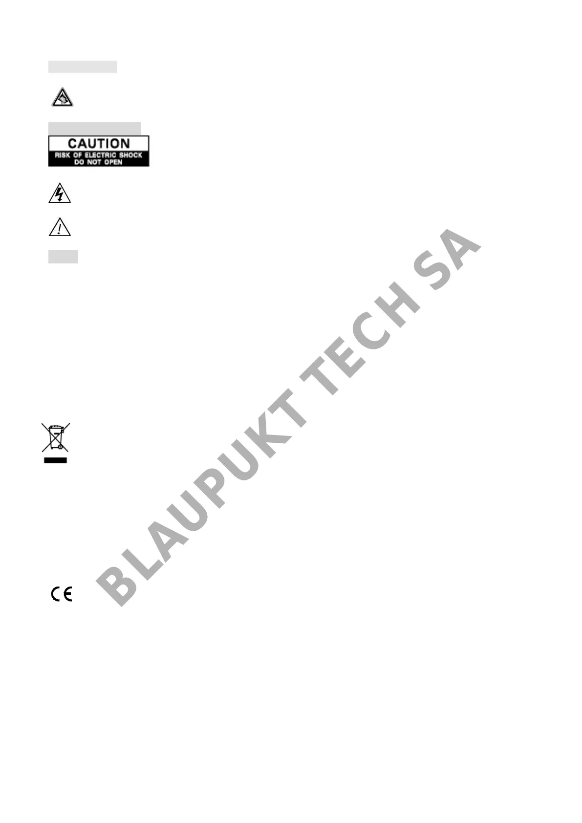 三角形内の矢印付きのストロボは警告の標識であり、ユニット内の"危険高圧"表示しています。