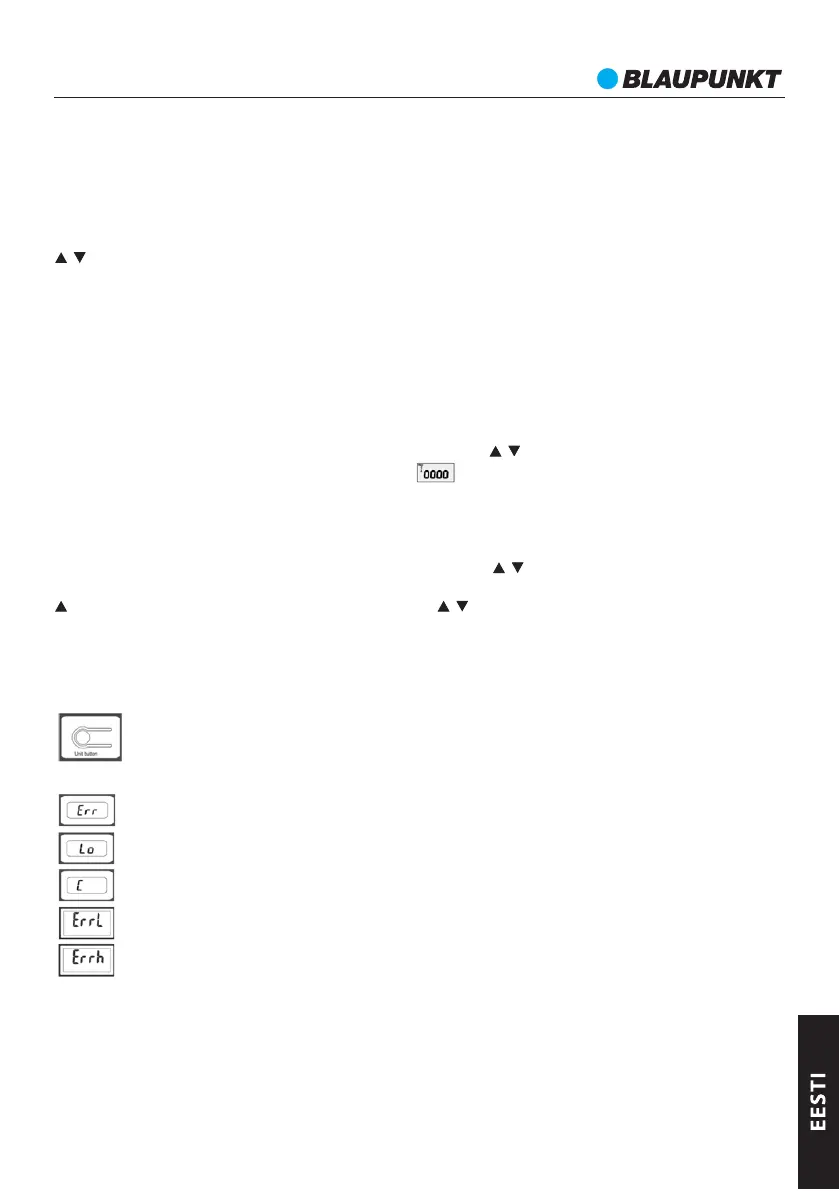 Parameetrite valimine algab vajutamisest nupule SET. Parameetrite väärtust muudutakse nuppudega