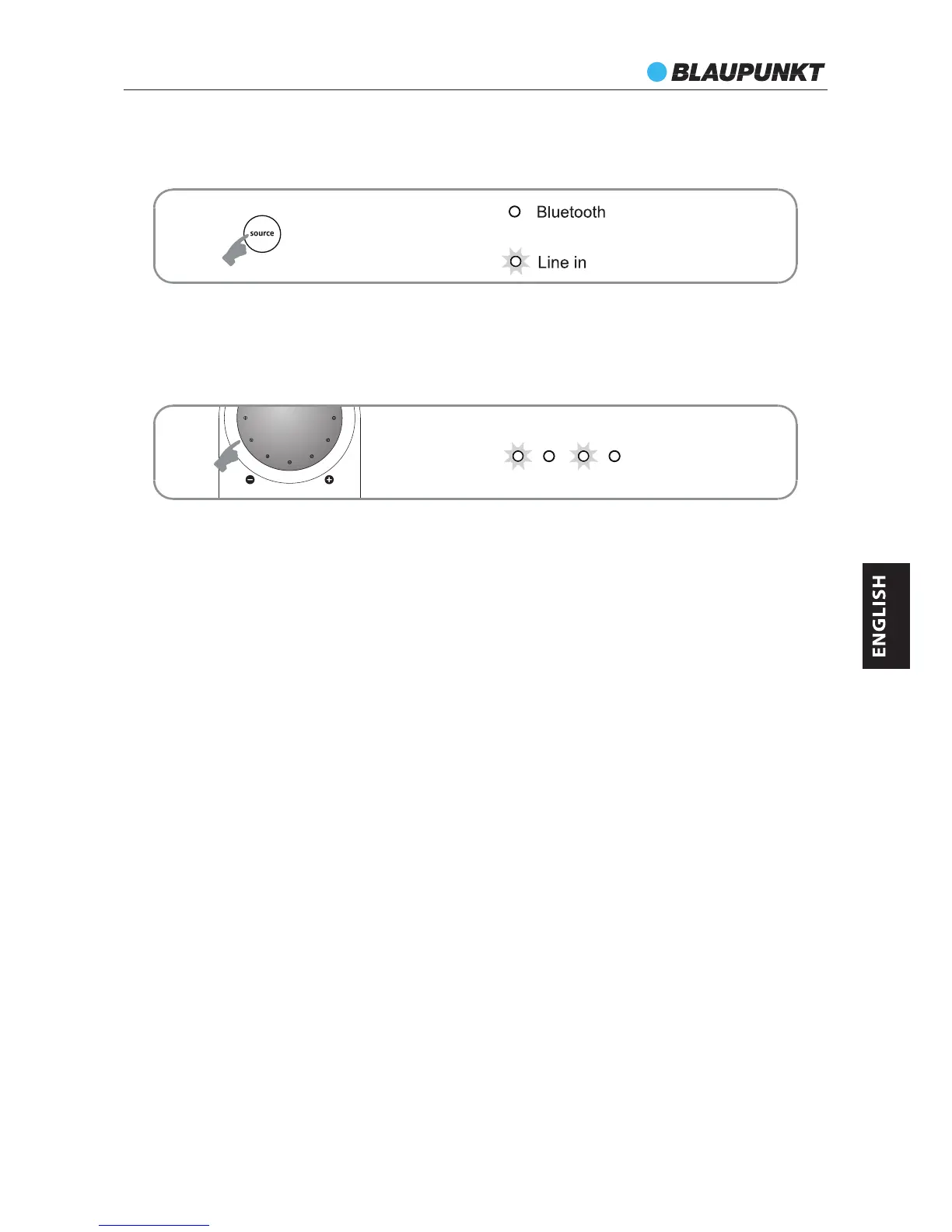 5. Depress the source button and the Line IN LED will lit up. The system is now ready to