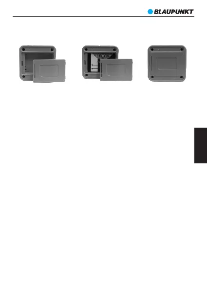 (dodržte +/- póly), zavřete kryt baterie, viz následující