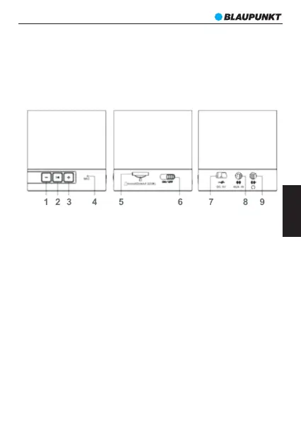 1. Tlačidlo Posun vzad / Zníženie hlasitosti