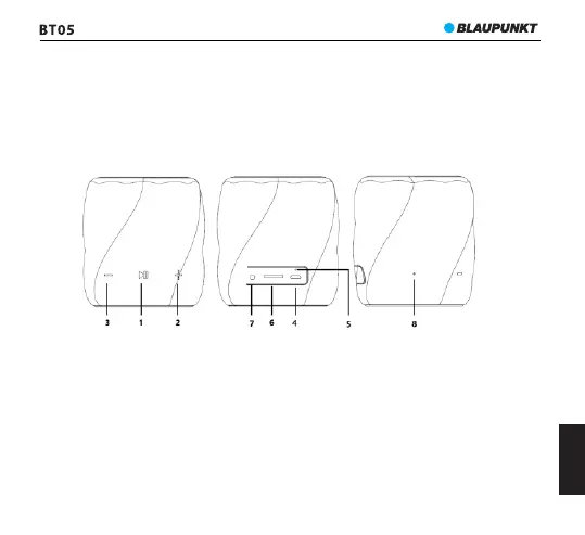 6- Vtičnica za kartice microSD, 7- vhod AUX IN, 8- Odprtina mikrofona.