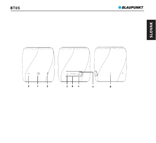 1- Tlačidlo prehrávania a pauzy; 2- Hlasitosť +; 3- Hlasitosť -;