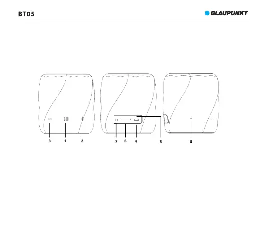 1-Play/pause, 2- Volume +, 3- Volume -, 4- DC 5V microUSB input, 5- power and