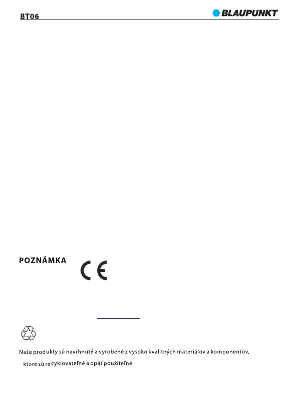 Prehlásenie o zhode je možné získať zo stránky produktu na www.blaupunkt.com. Zodpovedná