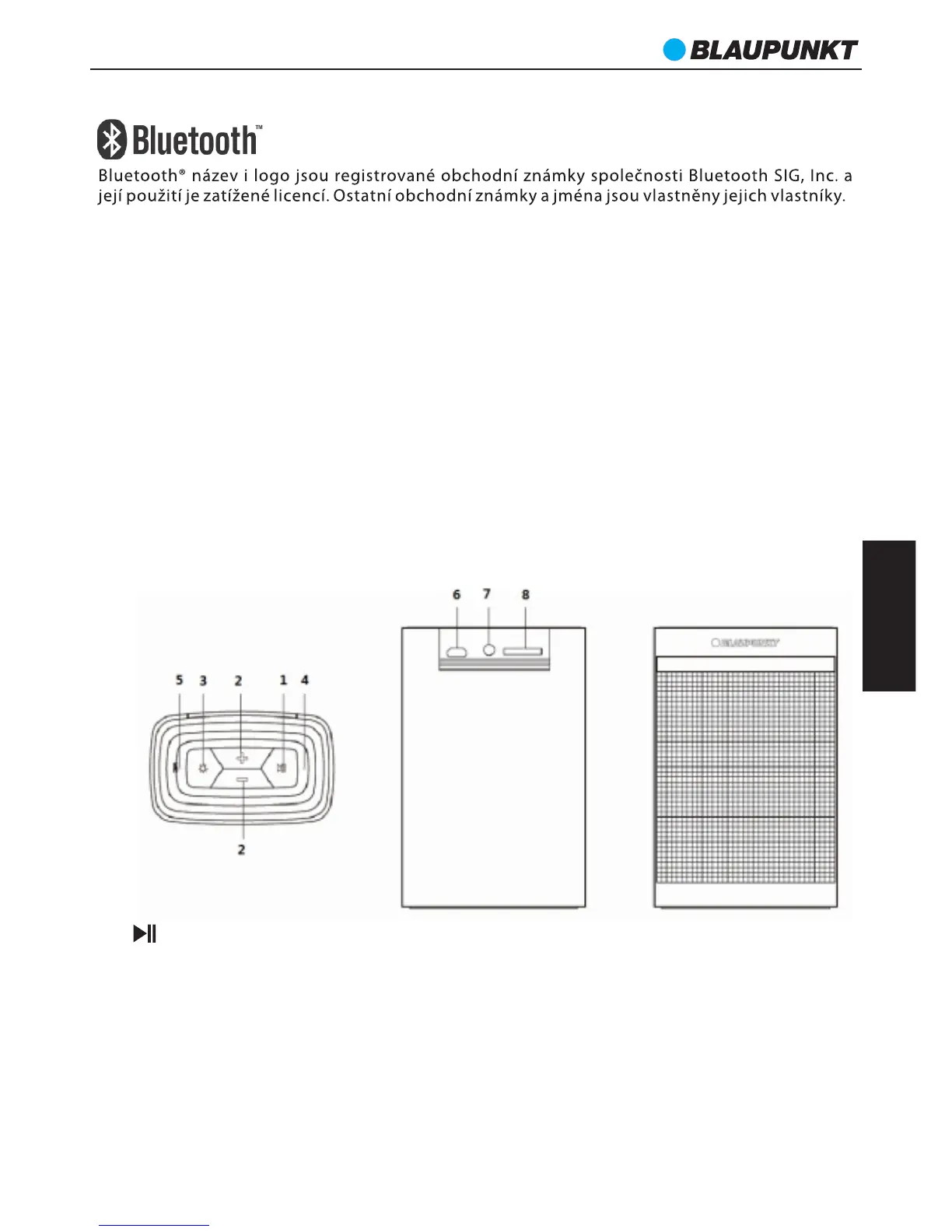 přepíná mezi režimy Bluetooth / tuner FM / microSD / vnější