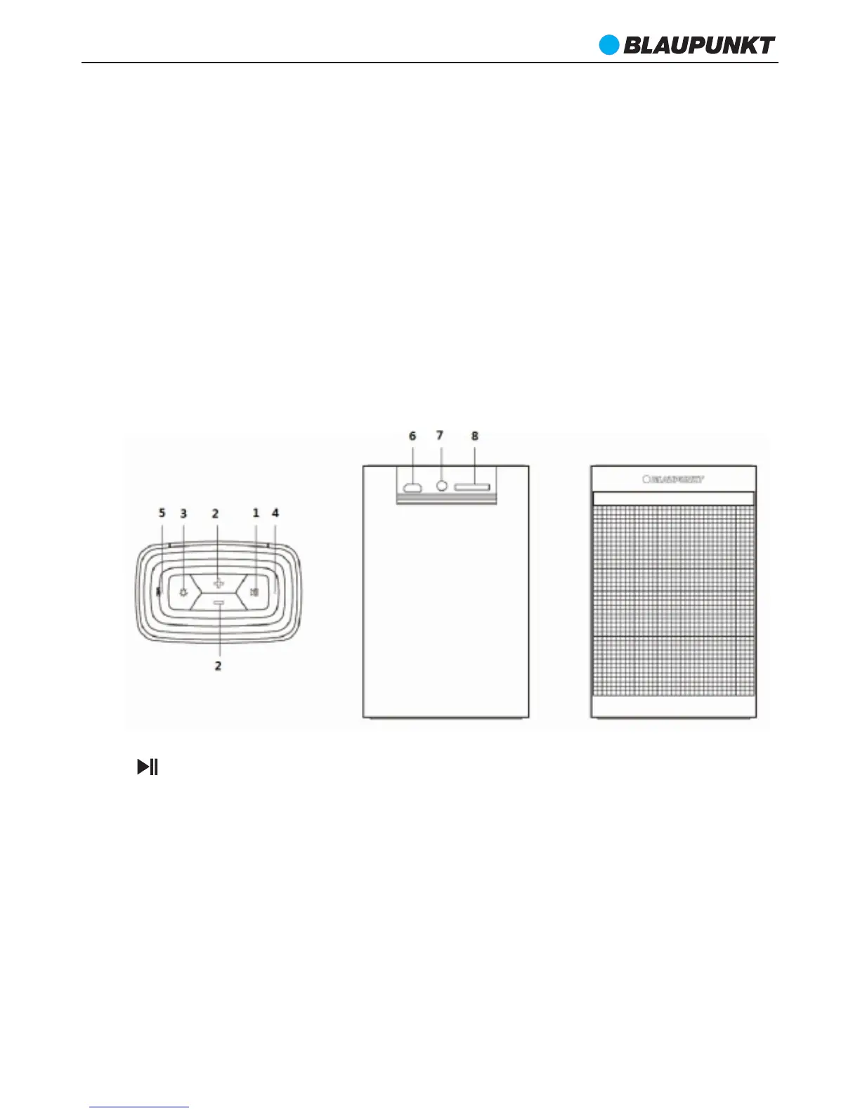 1. : Power on/off, source and play/pause control.