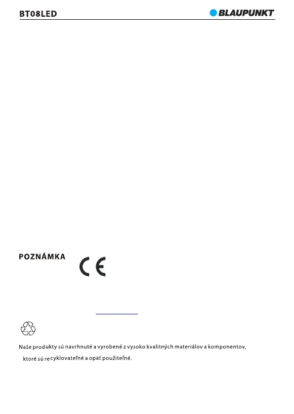 Prehlásenie o zhode je možné získať zo stránky produktu na www.blaupunkt.com. Zodpovedná