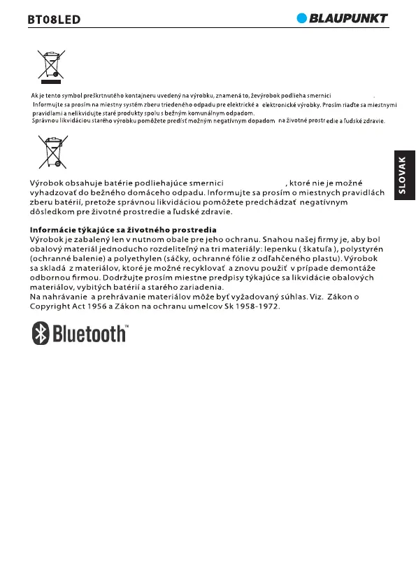 Bluetooth® názov i logo sú registrované obchodné zmky spoločnosti Bluetooth SIG, Inc. a