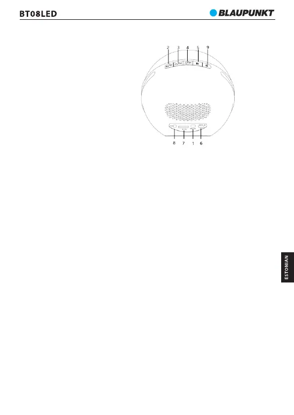 5.Nupp Mode: vajutage lühidalt bluetooth / FM / microSD ja AUX IN mängimise režiimide vahel
