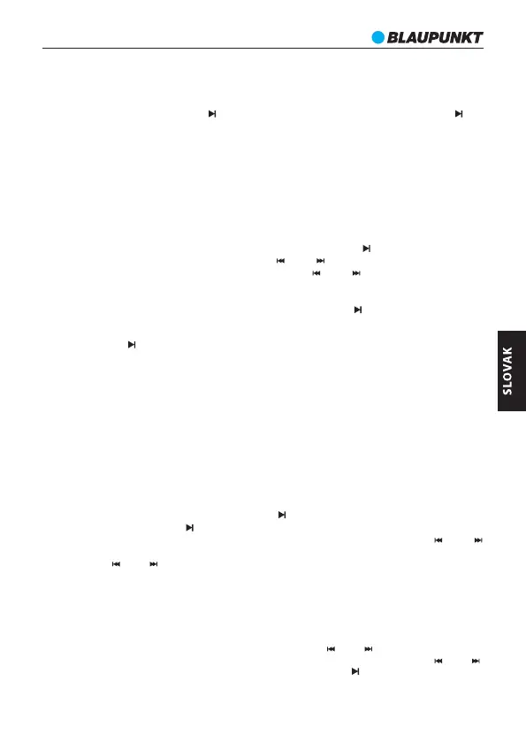 pozastaviť hudbu, krátkym stlačením tlačidiel alebo zvolíte predchádzajúcu alebo