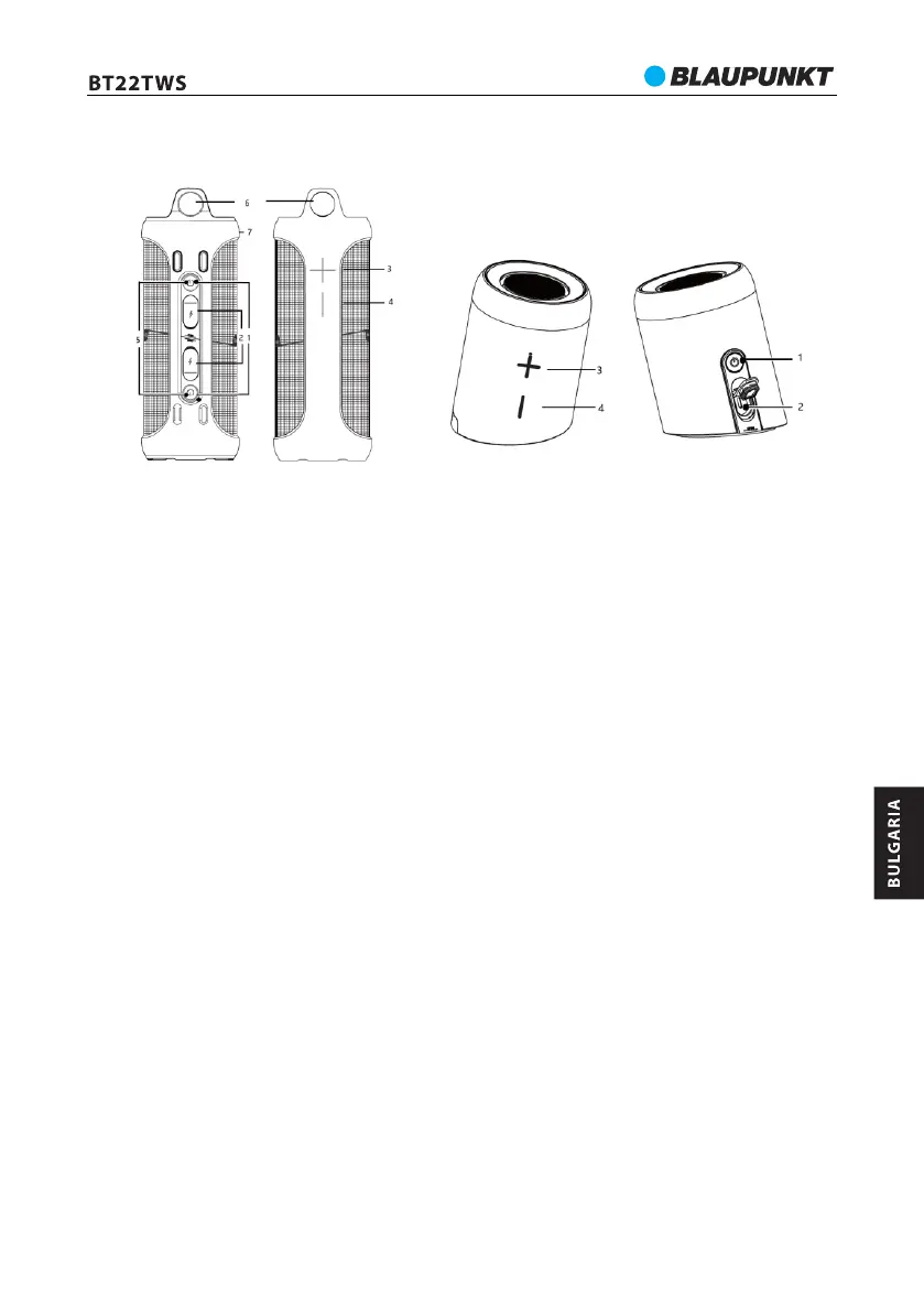 1- бутон на захранването; 2-DC 5V гнездо за захранване microUSB; 3- бутон за увеличаване на силата на звука; 4- бутон за