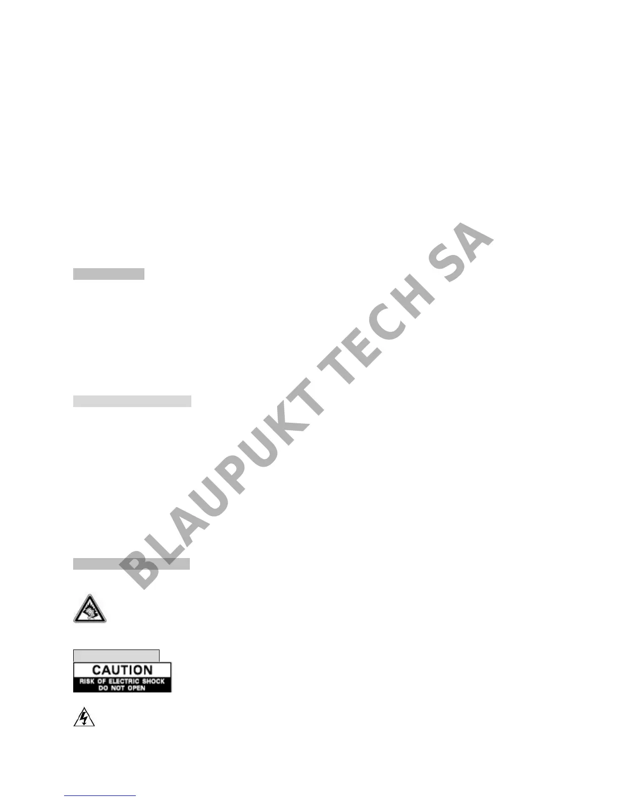CAUTION: To reduce the risk of electric shock, do not remove the cover (or back). There are no